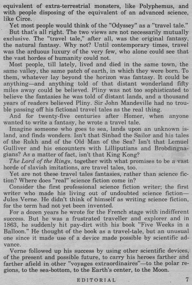 No entanto, esses contos de viagem não seriam mais fantasias, em vez de ficção-científica? Onde é que entra a “verdadeira” ficção-científica?